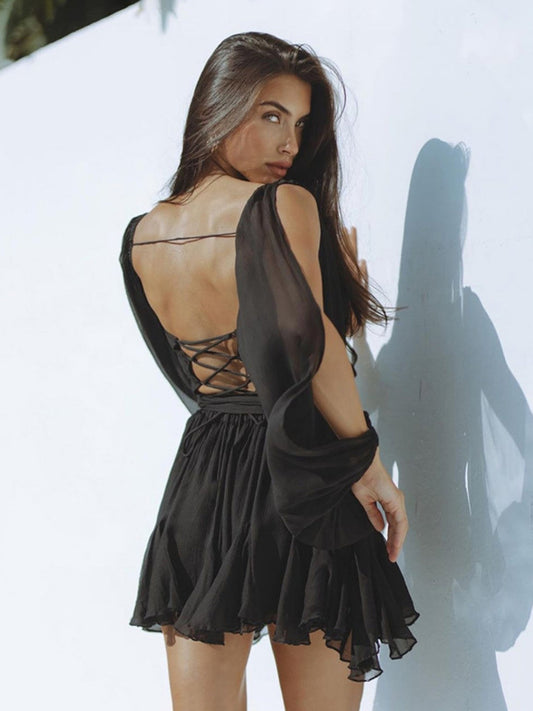 Shiny Backless Lace up Short Evening Dress