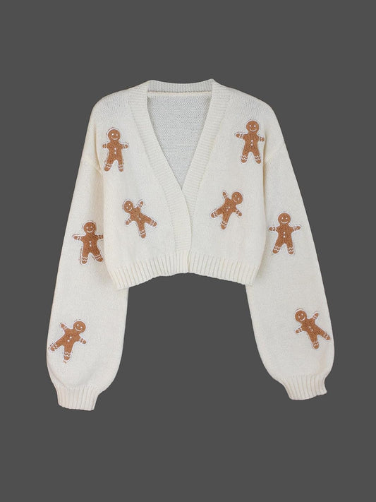Women's Christmas Gingerbread Man Cardigan Sweater