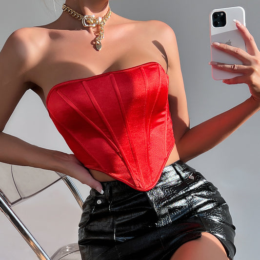 Glossy Tube Top Diamond-Shaped Corset Chest-Wrapped Vest