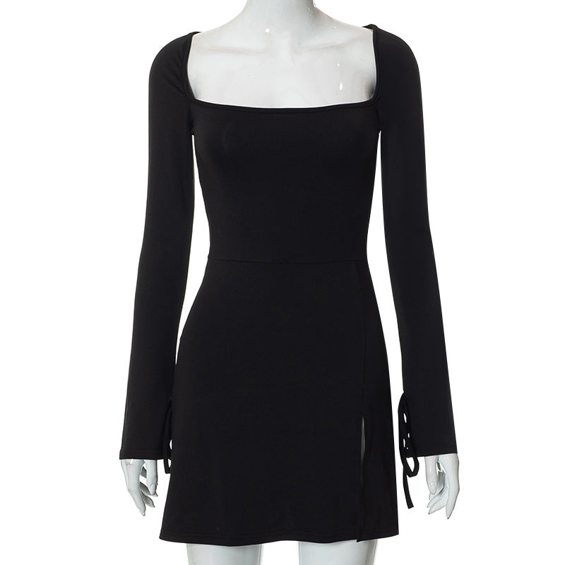 Expertly crafted for both style and comfort, this Square Collar Long Sleeve Hip Split Dress will elevate your wardrobe. With a sleek square collar, long sleeves, and hip split design, this dress offers a modern and sophisticated look. Perfect for any occasion, this dress is a must-have for any fashion-forward individual.
